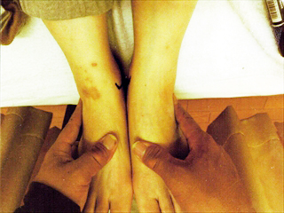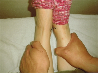 写真2 1回目の治療から1週間後、やはり筋緊張している組織に対しマッサージ療法