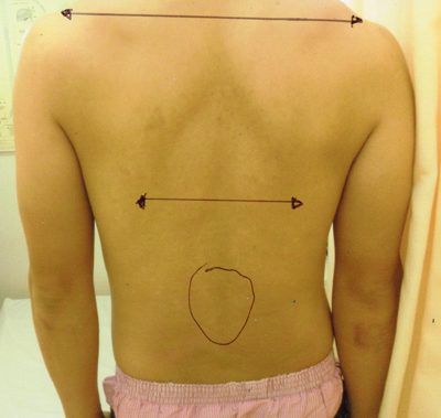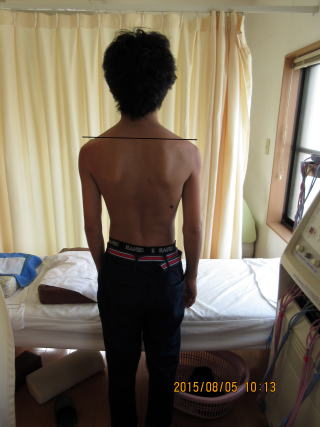 脊柱が生体力学的に安定を保つには脊柱が正常な弯曲を持つことが必要だが彼の場合、右肩が下垂し