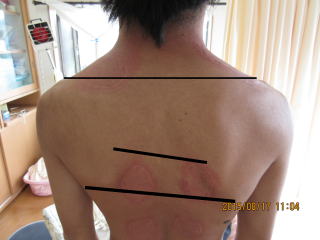頚部の疼痛、及び肩甲骨内経部から右背部下部 特にT5.6.7の疼痛及びL4.5付近の疼痛を訴える。基礎疾患として本態性高血圧、頭痛、過換気症候群がある。