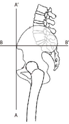 5、両腸骨稜を結ぶ直線と両坐骨結節を結ぶ直線は平行ないし水平