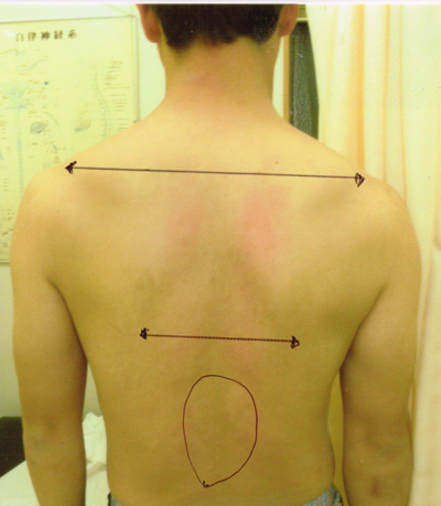 友人からの指摘により胸椎弯曲部位の矯正治療を当院で受けることになった。