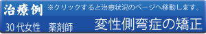 【解説】 1個またはそれ以上の脊椎分節の側方への弯曲や角度の偏位を示す。 又、胸椎前方変位も呈す。 当初、週1回のモビリゼーション、マッサージ治療、鍼治療の後、骨格矯正施術を行う。 |